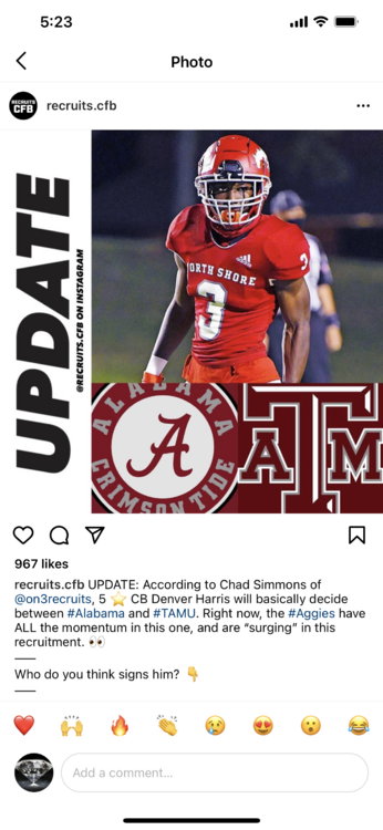 18. Apparently Denver Harris is down to Alabama and A&M...