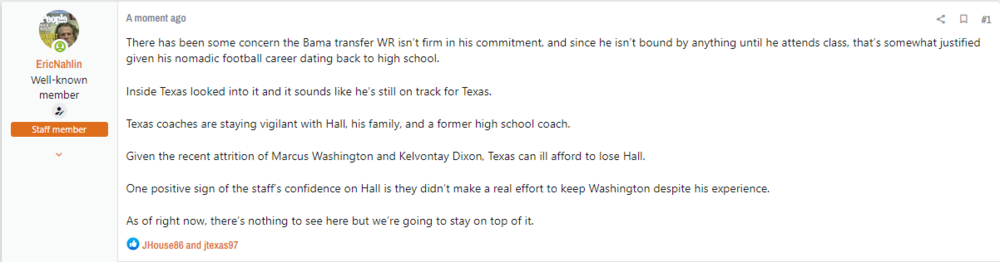 2. Burton on IT hinted a while back that Addison's decision could affect Hall...however anyone who is surprised that Hall isn't listed on the roster doesn't understand how transferring works. If Addison commits here then we should put Hall on decommit watch, but until then this is a nothingburger.