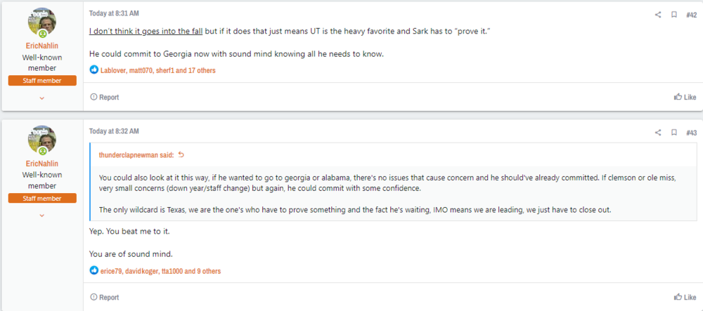 9. Seems like each team's mods all have the same (low) level of confidence. Nahlin said he "hasn't written [Sanders] off yet." West (Arkansas mod) put in the prediction but admitted he wasn't sure and that he keeps hearing different things. And Drumm's thoughts have already been posted here.