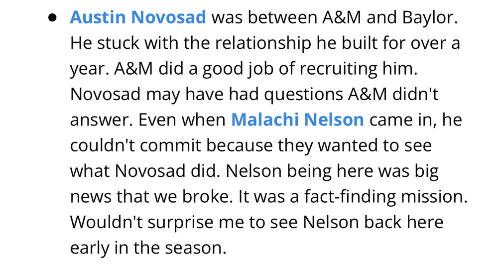 9. TexAgs says Nelson couldn't commit when he was visiting A&M because the coaching staff were prioritizing Novosad 😂