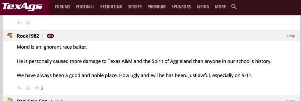 aggys think Mond should have acted more like Sammy, a good aggy who knows his place in aggyland. (yes, this is a legitimate picture of an aggy student. https://www.facebook.com/sammy.travis.33)