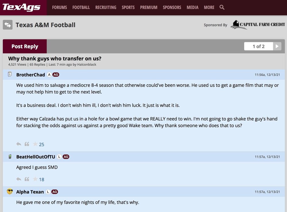 ags and their "history of convenience" and "situational ethics" are comical. Horace Carswell enrolled at A&M back in the 1930s, stayed one semester, ran like Hell from that shithole and then spent four years at TCU getting his education. To this day, as evidenced by his shrine on the aggy campus, aggys embrace Carswell as one of the greatest aggys EVAR! Barely a semester on campus and plenty of evidence that he wanted nothing to do with A&M, or anything A&M was about. Yet here is a kid who showed up, did what was asked of him, "stood ready to come off the bench to the aid of his school in a time of great need," delivered a season-salvaging win against Alabama while playing injured, and "aggy ethics" don't even earn him a "thank you" on the way out the door as he carries the aggy diploma he earned under his arm. And let's not forget King Gill quit on his team mid-season back in 1921 because he wasn't getting playing time and thought he would do better playing another sport (basketball). His having quit on the team was why he was in the stands for the 1922 Dixie Classic game and not on the sideline with the large group of other available substitutes. The people of Texas deserve better than Texas A&M.