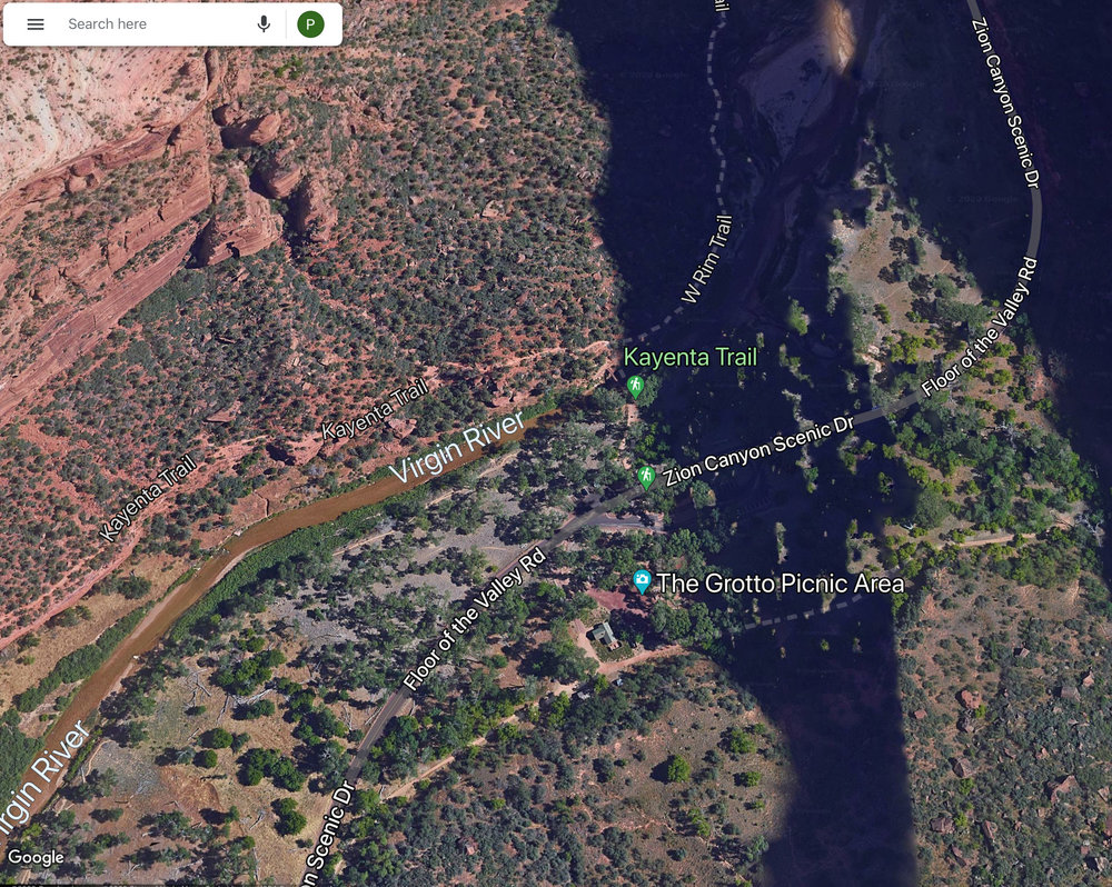 17. Lost for.12 days a half mike from the parking lot of this trail: https://www.citrusmilo.com/zionguide/grottotrail.php Not buying it Bernard Photos The Grotto Trail is a short half a mile trail that starts at the Zion Lodge (the 5th stop for the Zion Canyon Shuttle) and ends at the Grotto trailhead and picnic area (the 6th stop). The trail is almost completely level as it follows the canyon floor though a pleasant wooded meadow and then runs alongside the Zion Canyon Road before ending at the Grotto.