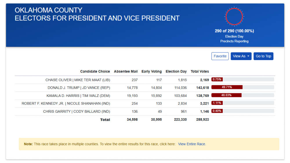 Here you go--the election results from Oklahoma County, Oklahoma (where Tinker AFB is sited): Oklahoma County is about as blue as Oklahoma gets. Now you want to really hurt some MAGAts--go after Vance AFB in Garfield County. -