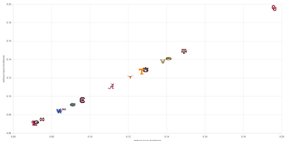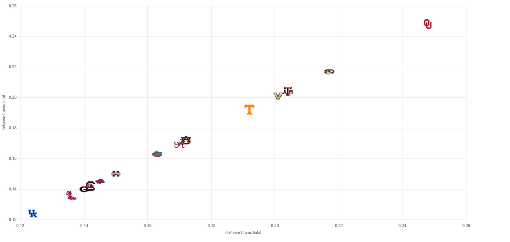 9. I was going to say Georgia is near the bottom of the SEC in havoc rate. Then I saw Kentucky is still at the bottom even after the Texas game. https://collegefootballdata.com/metrics/season total havoc rate front 7 havoc rate