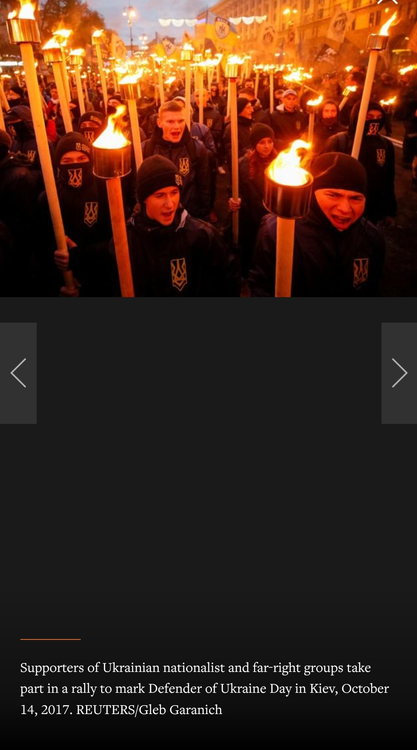 9. You think Reuters photoshopped that picture? And I don't think it's meaningless, did you think the Charlottesville rally was meaningless? Reuters in 2018: https://www.reuters.com/article/us-cohen-ukraine-commentary/commentary-ukraines-neo-nazi-problem-idUSKBN1GV2TY