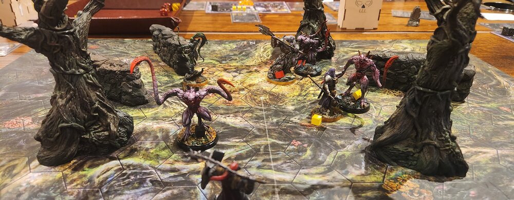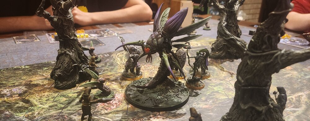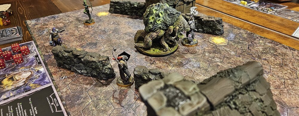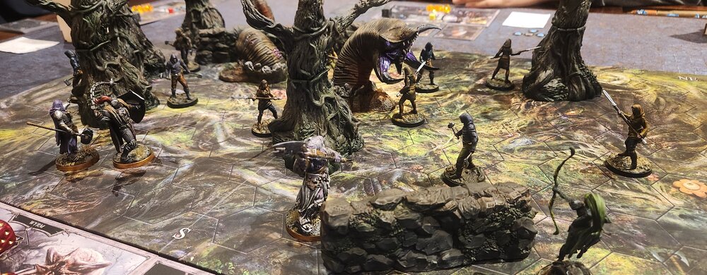 I've been lax updating, but here's some recent games we've gotten to the table. I know some have tried to have less 7th Continent (people were selling it like crazy before this launch), but I'm over here trying to find time for more. 7th Citadel is a great 2.0 game that takes away the grindy bits of 7th Continent and favors more exploration, which is the whole reason for the season. We played a lot of Kingdom Rush's campaign and really enjoy the way it's bringing the app to the tabletop experience. It's a fun puzzler really and the production value is stellar. Age of Steam is still a game we play the most often and we just received the acrylic tiles as well as the latest map expansions. This is also the first time we played with the plastic train upgrades. Age of Steam is one of those games that should probably be in everyone's collection. More ISS Vanguard, this time with a reset! Zzzzz Another favorite, especially with normies is Foundations of Rome. We recently received the latest expansion but haven't had a chance to play with it yet since we had to play vanilla to accomodate noobies. It's on the list though. Carnegie is fantastic! @TexArcher thinks it's solvable though. We might have to find out. The newest Stonemaier game we have, Apiary, seems like the company getting back to releassing top-tier titles. Highly recommend this worker placement game. I still need to pick up Wyrmspan, but we have Wingspan's Nesting Box filled to the brim - Do we really need more? Probably. Kanban EV is now my 3rd favorite Lacerda, with a chance to rise. And there's something about Eagle-Gryphon deluxe games that just give me the warm and fuzzies. We finally got Galactus out and he started devouring almost right away. I love these silly over done epic CMON scenarios so much that it's the only part of the upcoming Game of Thrones tactical game I picked up. And keeping with the epic CMON games, we played Dune: War for Arrakis and had a blast. I've still never played War of the Ring, but now I wonder if I ever have to. The wife and I still play a lot of Kingdom Death, but this time we tried the latest Vignette of Death, Killenium Butcher. We promptly got butchered and a good time was had by all. But the game we've played the most by far is Oathsworn. I'll post pics here behind a spoiler shield because I know people are big on that. Don't click if you don't want to see very cool bosses being battled. You remember that dice tower inspired by the OG Player's Handbook cover. I thought it looked great but to my surprise it doesn't come painted like the cover. It's missing a gem eye, which is being stolen on the original cover, which is a cool detail, but if it's not lit red by the cauldron it's not the cover! So I painted it myself to match. It looks great when the fire is turned on. lol And we're now getting dangerously close to running out of space for neoprene mats. Is this just how it's going to be from now on, constantly having issues storing these things? Excelsior!