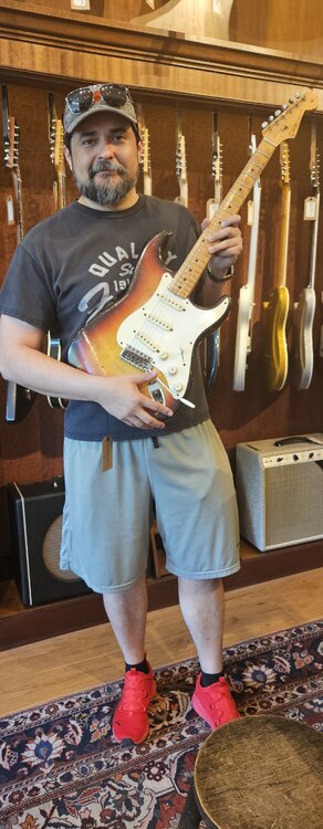 Had a chance to drop by the Music Emporium in Lexington, MA, and their killer, no filler stock. We're talking, this place has 4 Froggy Bottom guitars in stock. It's that kind of place. If you're ever near Boston, it's worth the 30 minute drive. Everything is the store is worth owning. Even finally got to play a Vemuram Jan Ray. It costs more so you know it sounds better. #science Because I'm a simple guy with simple needs, I was drawn like a moth to a sunburst to the 58 Fender Strat with the $45k asking price. I was even wearing a Fender shirt, so I had the fanboy cliche dialed up to a pretty intense level. Unrelated, dig this cupcake topper the in-laws had for my birthday. lol Too cool. It's made with sugar and completely eddieable.