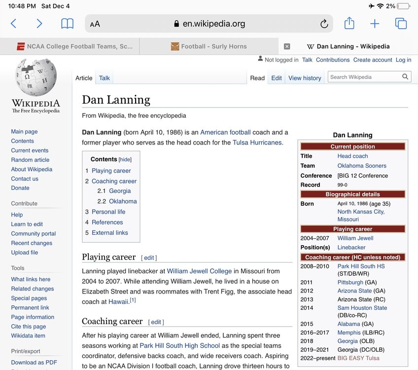 2. Lanning head coach of BIG EASY (wtf???) Tulsa Golden Hurricane! $9.95 please. 🤪
