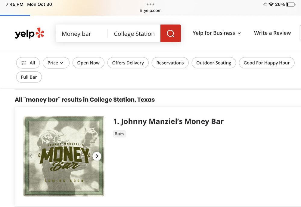 19. Manziel’s ¢Bar¢ not letting the wheelchair crowd in. aggy, never stop being you! And may I add, what a lit crowd hanging out at the ¢Bar¢. 🤣 https://www.kcentv.com/video/news/local/johnny-manziels-money-bar-officially-opens/500-3bfc6a5e-33c3-4b26-bc31-4d8ee8c6a3b3