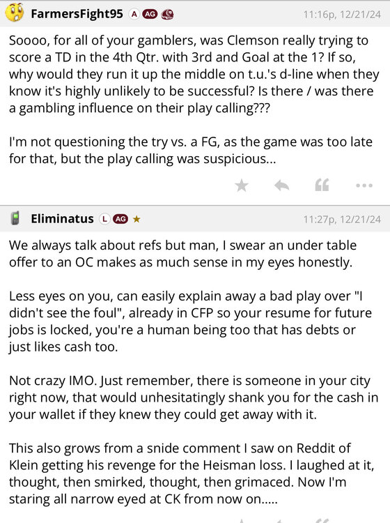 2. There was a guy in their game thread arguing that the refs were throwing the game because not only was there an obvious hold on Blue’s long TD, but Taaffe’s fourth down play was the textbook definition of targeting. I also found this beauty in the zoo: