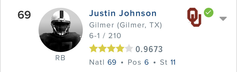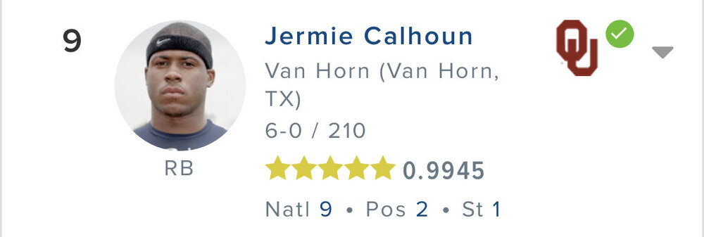 Sooners hope their newest East Texas back is more like Adrian Peterson and less like these two beasts: (*Van, TX—Town listed is incorrect) Total contribution from them— 26 G, 70 Carries, 266 Yds, 1 TD, 5 Rec, 39 Yds Village bicycle looks to be in excellent condition.