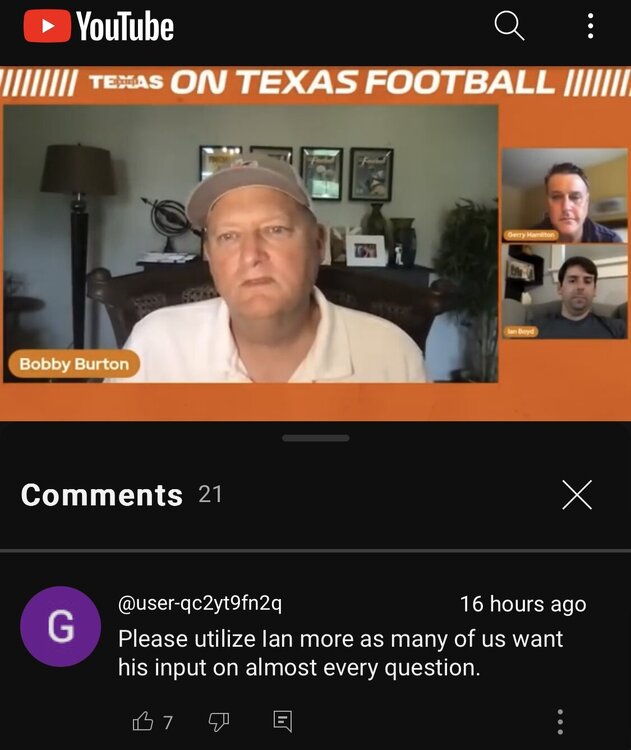 Same thing on Bobby’s livestreams. There is so much stupid that shows up over there & their moronic ass questions/comments have to be read because they are superchats. It’s substantive conversation followed by five different incantations of: -“Gerry, how many guys will be drafted next year?” (Literally asked at least twice in every stream for over a month) -“Bobby, why does Bo Davis suck at recruiting?” Followed by “Well, why haven’t they offered every four or five-star defensive lineman in the country?” -“Gerry, do you think Sark should let Arch start vs ISU to keep him from transferring?” And then Ian Boyd finds a way to Rube Goldberg DJ Campbell into Texas’ next great nose tackle—intimating that the reason he didn’t win a starting job on the offensive line in his first year is because he doesn’t have the mental aptitude for it and therefore he should switch to defense. That is literally something he mused on air. Gerry rhetorically bitchslapped him for it.