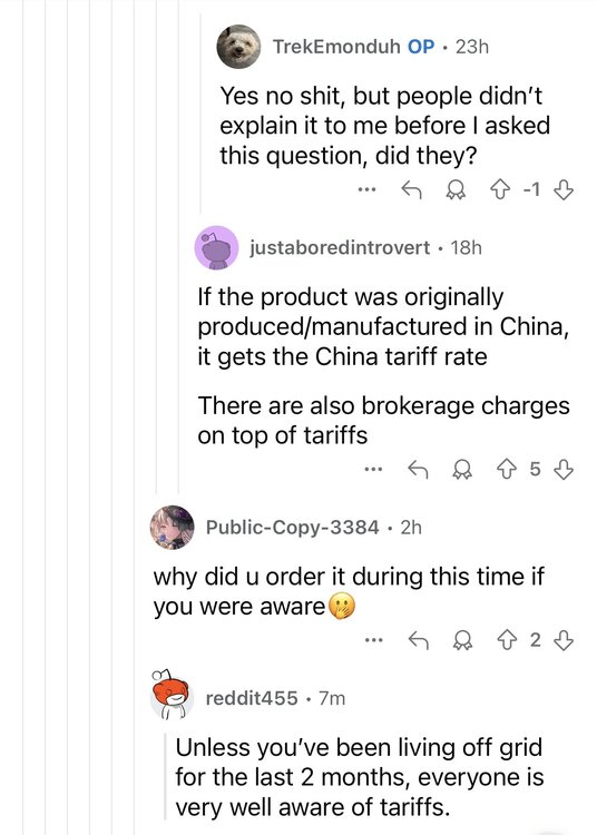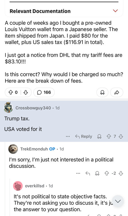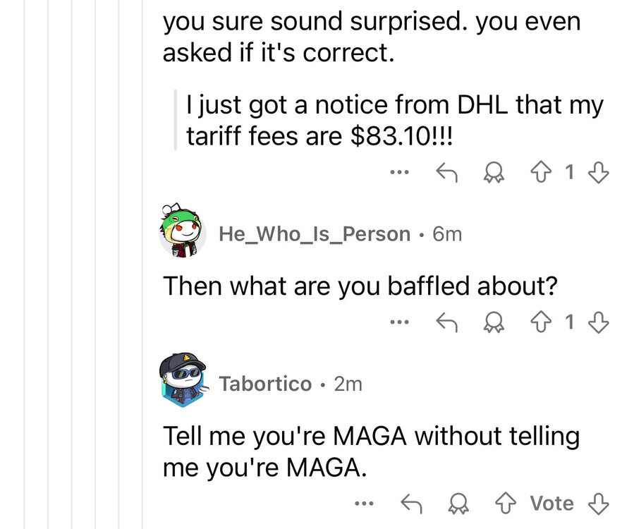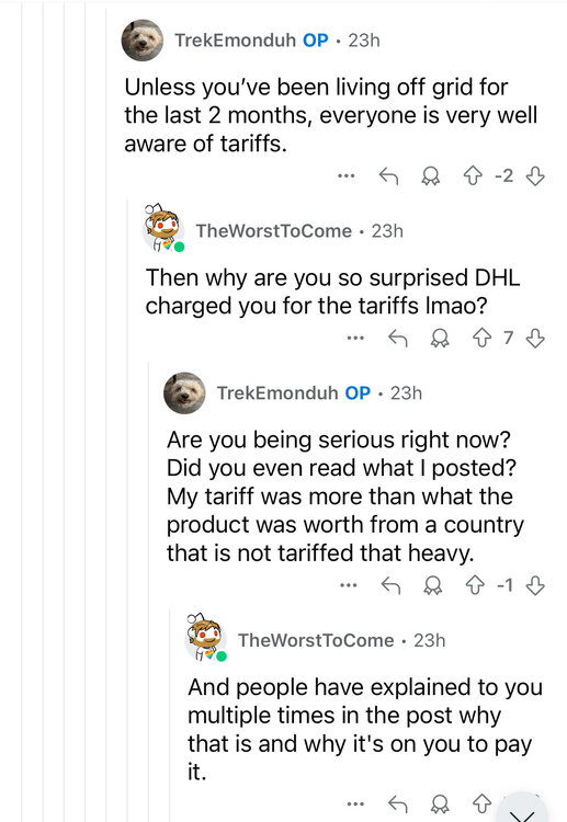 maga aggy doesn’t understand how tariffs work. DHL subreddit provides insight. And I bought this sweet ass used wallet with no ass sweat… how do tariffs work, DHL community? Trump tax is the term that should be repeated over and over and over. -