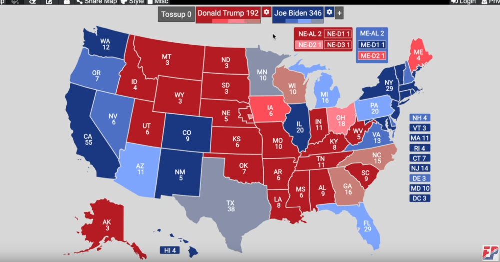 10. This guy on youtube took current averages and accounted for the 2016 election day shift between actual numbers and final polls. For example, Texas was +11.7 in 2016 in polls, actually won by +9. Currently Texas is +1.2, so the same 2.7 point shift would give Biden a win in Texas. His map accounting for that looks like this. Even if we take out Texas and call that a pipe dream, it's still favorable.