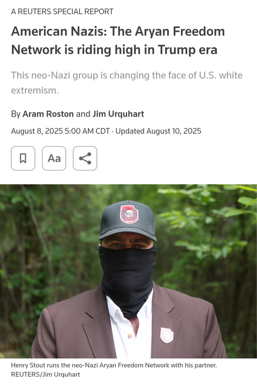 1. https://www.reuters.com/investigations/american-nazis-aryan-freedom-network-is-riding-high-trump-era-2025-08-08/