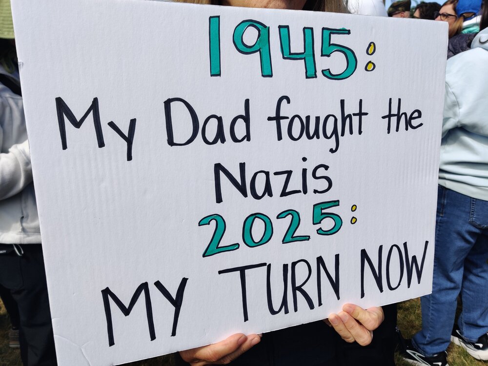 2. Hung out with my BFF Rick again today Lotta great signs as per usual. This one tho... She was just in the crowd, but talked with us about her dad being a part of one of the first groups into a concentration camp. As she was sharing this, a man with a Ukrainian flag around his shoulders came up and started crying as he listened to her. His Jewish grandparents came to America after the camp they were in was liberated. It wasn't the same one (can't remember the camps names, dammit), but still an incredibly powerful moment.