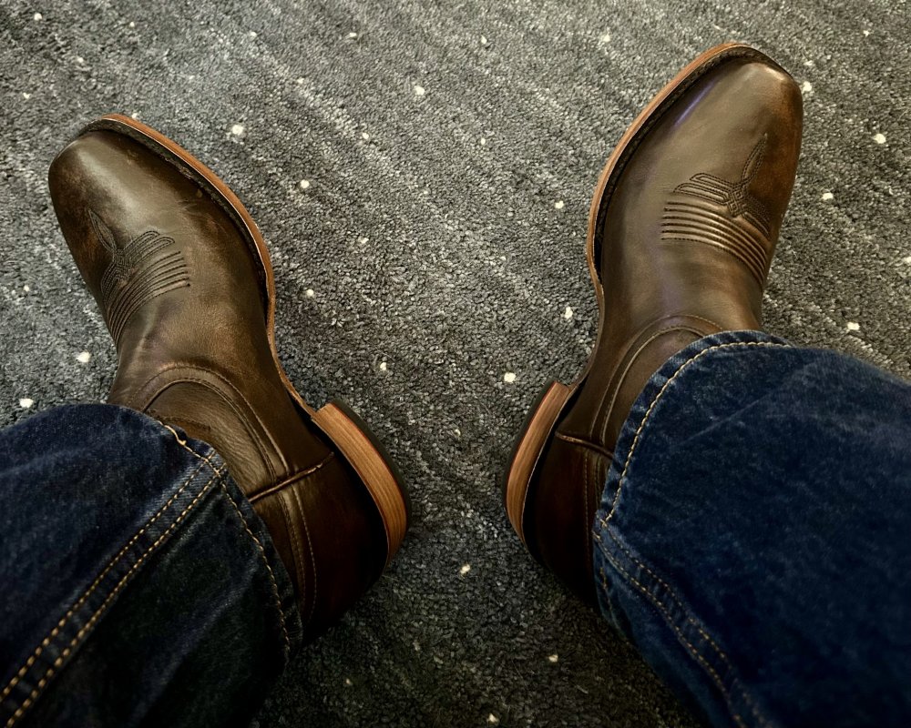 9. I Bought some Ariat boots while in Nashville for the game last week. Ariat Men's Sport Wide Square Toe Cowboy Boot They’re comfy but I bought a half size too big. I had also tried on Ariat Bench Made which I really liked but they did not have my size in the color I wanted. tried Tecovas too but I wasn’t sold on them. anyway, this sent me down the rabbit hole and ended up with Chisos #2 when I got back to town. time to break them in. fuck boots are expensive.