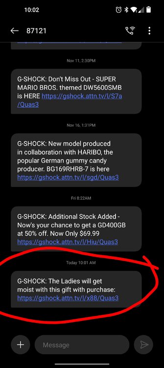3. I get text from g shock about new watches or deals they have. It's not enough to drive me crazy and one time I did get a good deal. Anyways, they sent this