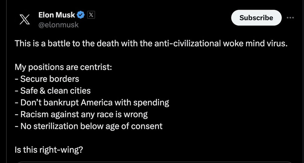4. Elon continues to prove he's a full blow libertarian, and like all libertarians, fights like death to defend simplified ideals while ignoring the vast realities of the world. Which is why libertarians are stupid. Everyone would agree with Elon's statement because he's not saying we he actually means. But in reality, it means