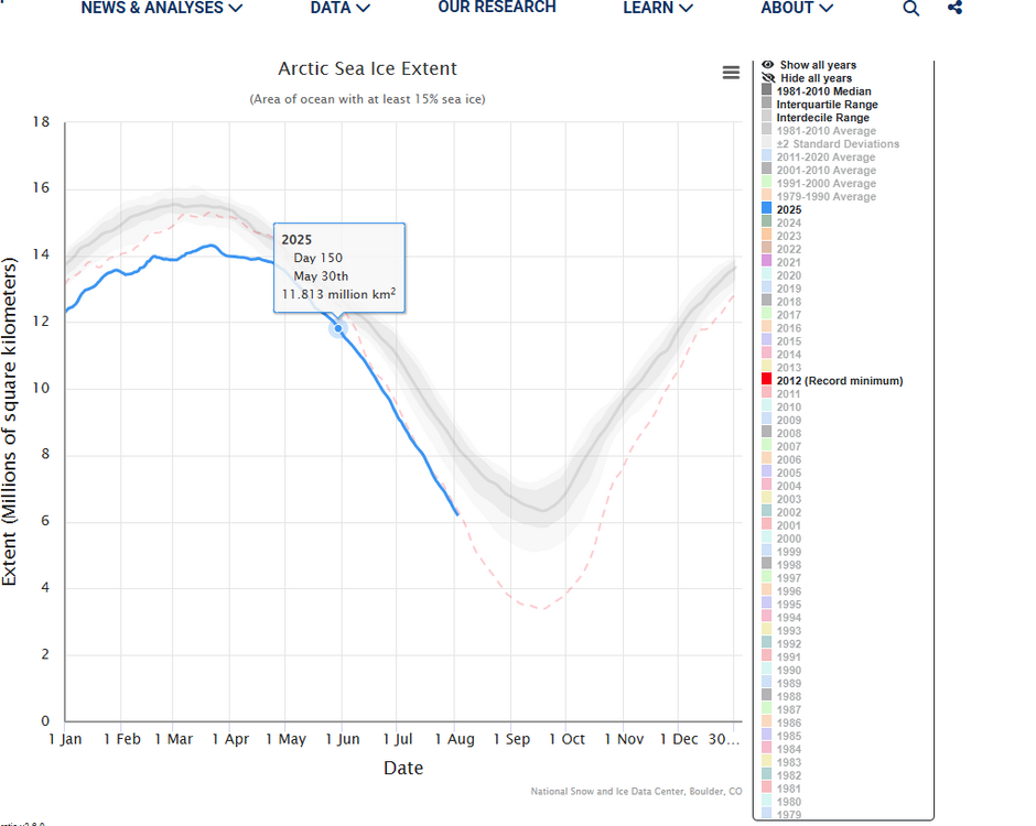 The redline is the 2012 record minimum. The greenish/blue line is 2024. That big think gray area? That's the fucking historical baseline.