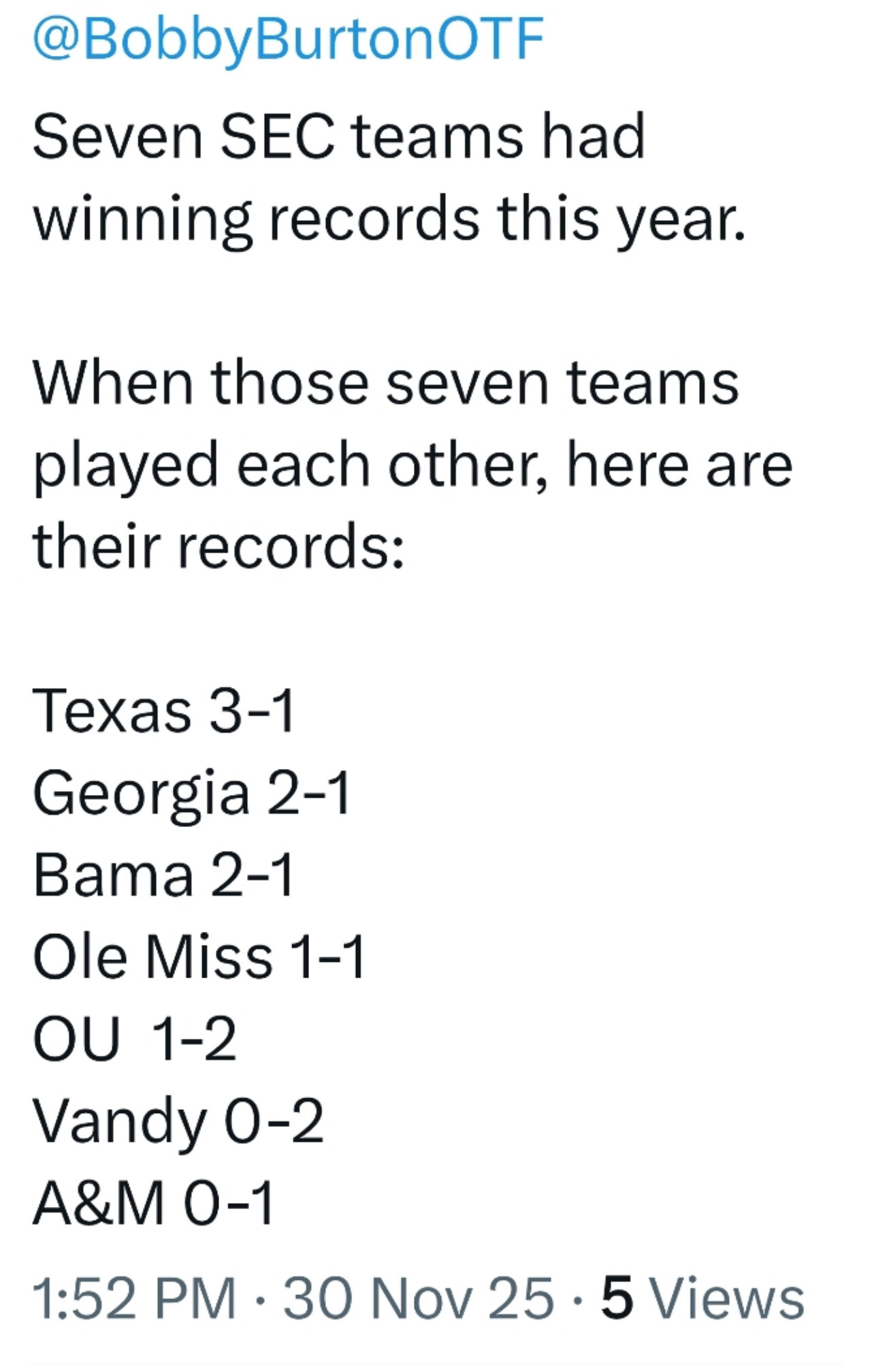 I fully believe that we should beat A&M. But, I don’t think deep down that we will because I have no faith that this staff will put our team in a position to win. I also have no faith that our head coach can focus up and see things as they are instead of how he may want them to be.