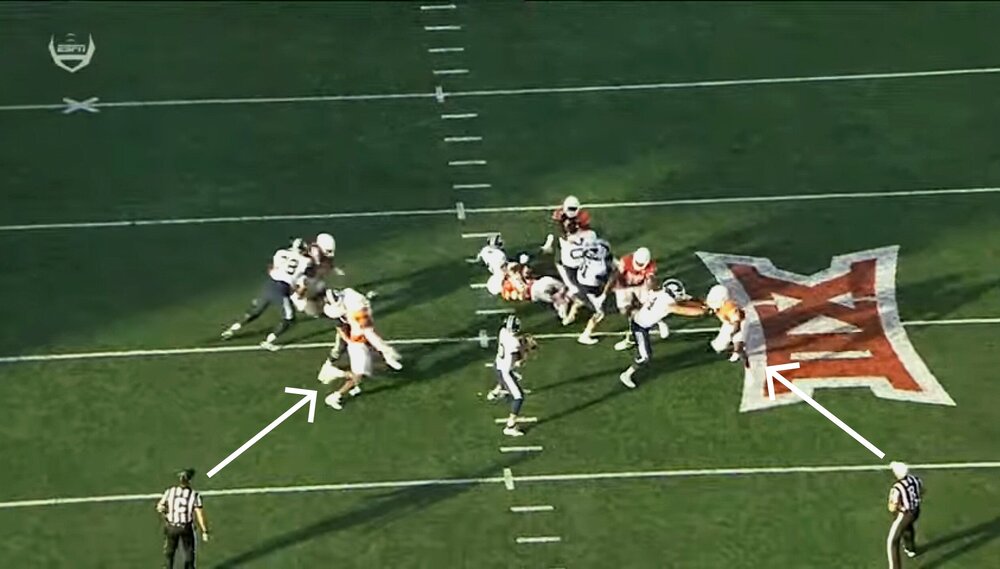 14. Not that it matters but our Tackle was carrying an OL to the QB there.