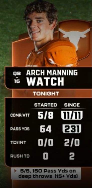15. It's just nice that Arch is getting the ball where it needs to be more since that first drive.