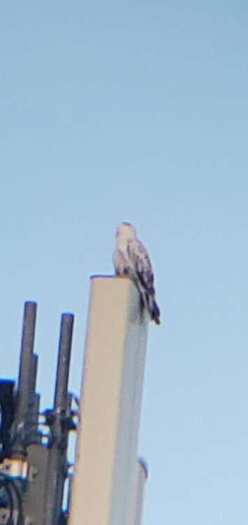 15. Absolute garbage binoc pic, but proof that there is a leucistic red-tailed hawk in my hood. I've seen it a bunch so hopefully I can get a closer photo soon.