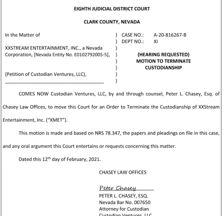 According to the state of Nevada, David Lazar is in charge of XMET until Custodianship is Terminated, so Wei Tian can't update the NVSOS. Also he can't R/S until he gains that control.