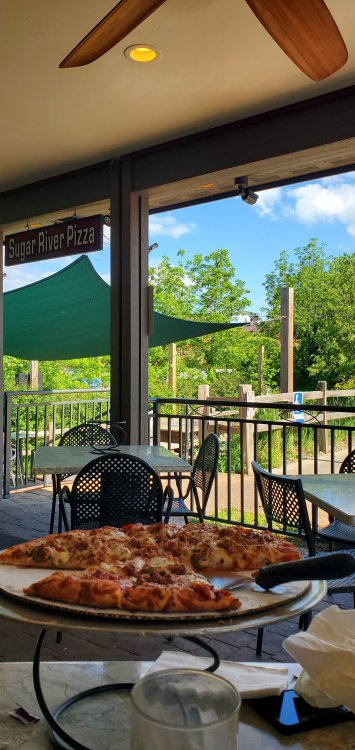 I once thought Spotted Cow was overrated. My attitude changed after a hike on the Ice Age Trail down by Devil's Lake, Wisconsin, a few years ago. It was the only craft beer in Mama Mia in Baraboo, run by Macedonians, which has pretty damn good pizza. And Spotted Cow, as a fairly light ale, really hit the spot. I now appreciate it more, but think one reason others go nuts is that it just sorta says "Wisconsin" like @Hammerin Hank's TBC above says "Texas." And both of those states also mean beer -- probably for different reasons. I also didn't know New Glarus didn't sell out of state. Found out a couple of years ago when talking beer with my son's friends on dorm move-out day in Minnesota. His buds raved about it. So now we usually take some with us to the Twin Cities, and I always take it to Texas. My Galveston uncle had never had it when I brought him some along with the Point bock @Iceman talked about above. My uncle also passed last year, so that's yet another beer I'm happy to have shared. And of course @Al_4_ISU is right. New Glarus makes a ton of fine beers, and if you ever get a chance to visit, you should. Take a brewery tour and you'll get a token that gets you a New Glarus beer at most, if not all, of the restaurants in the town. We used ours at Sugar River Pizza, which sits on the Sugar River Recreation Trail and also makes a fine pie. (Apologies for no beer or trail in the shot, but it's a fine beer setting, right across the road from the Little Sugar River, which joins the Sugar not far from there.) -