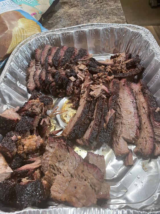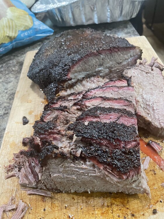 14. Camp Chef pro series has the smoke box to put actual wood chunks. First 2 hours on 200 to get more smoke and bark. 250 til I hit the stall, then 275 to push through it. First time I don’t wrap during the cook, just put tallow under the brisket and foiled it to let it rest. Turned out really good