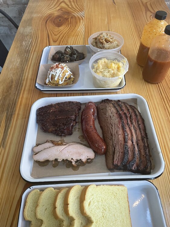 6. Made the pilgrimage to Burnt Bean yesterday. Ribs were the best I’ve had at a restaurant, didn’t care for the sausage, and the brisket definitely was overcooked that day. It was pot roasty and I couldn’t even get my leftovers into my to go plate bc it was falling apart. Bacon ranch taters were fucking amazing and so were the crispy Brussel sprouts. Truth in Houston is still #1 for me