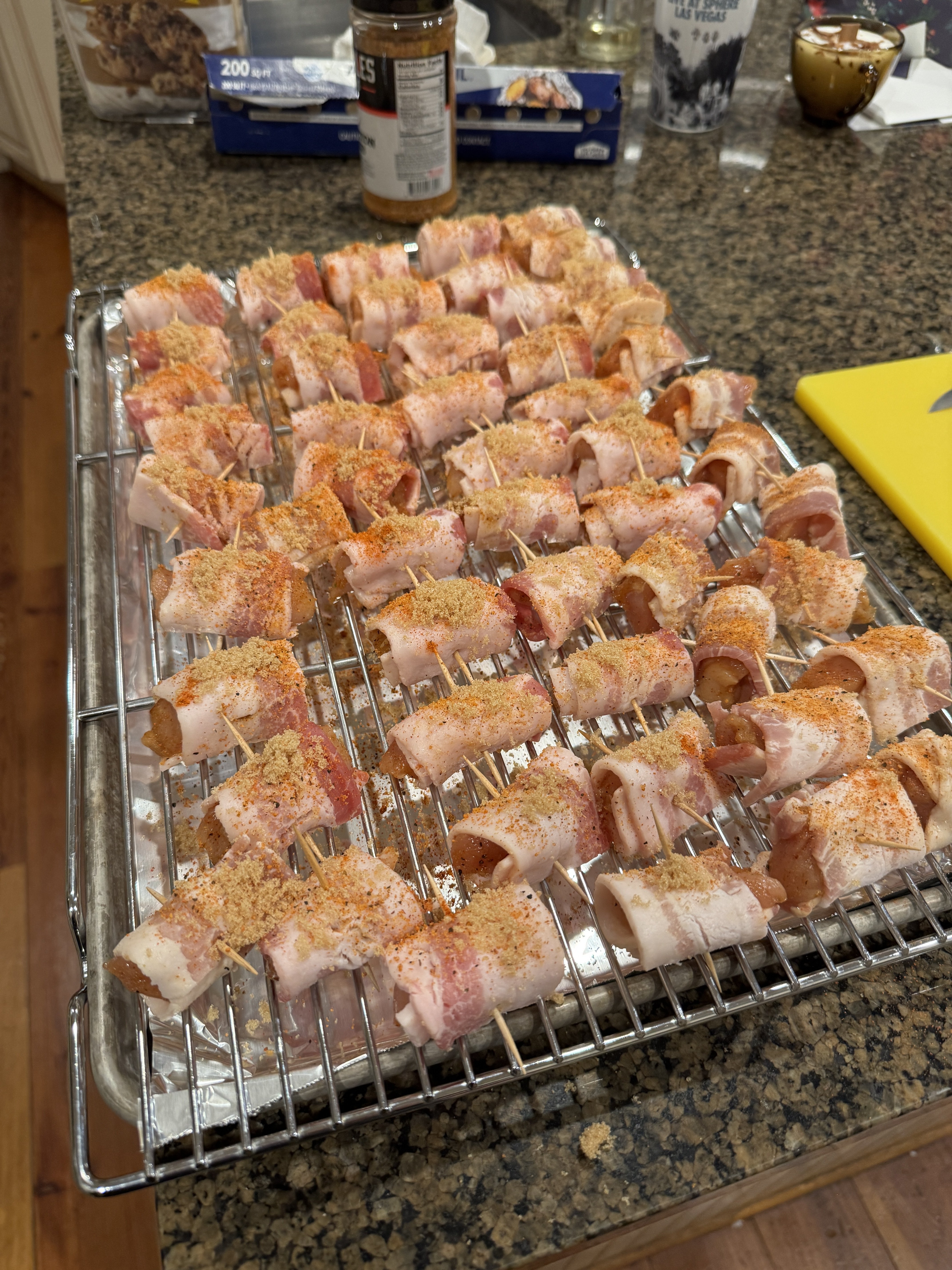 4. Cooked a bunch of bacon wrapped chicken bites to take to a football party. You can never make enough of these. Usually I use thighs but we had breasts in the freezer so I just thawed those and chunked them up. Always a hit. Just Google it, tons of recipes out there. It’s all about how you season them. No after pics, they got scarfed. Mixed some bbq sauce with hot honey for a dipping sauce.