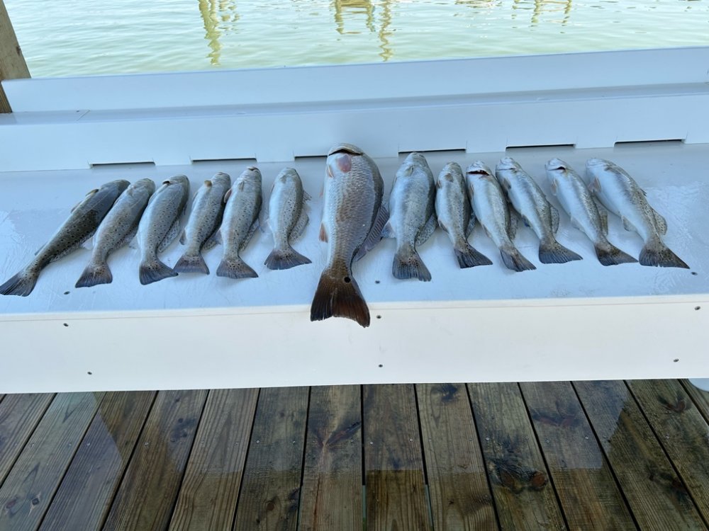 24. We got on them last week in POC. Three days of fishing plus a floundering trip. I guess I didn’t take any pics of flounder but ended up with four. Was tough night.