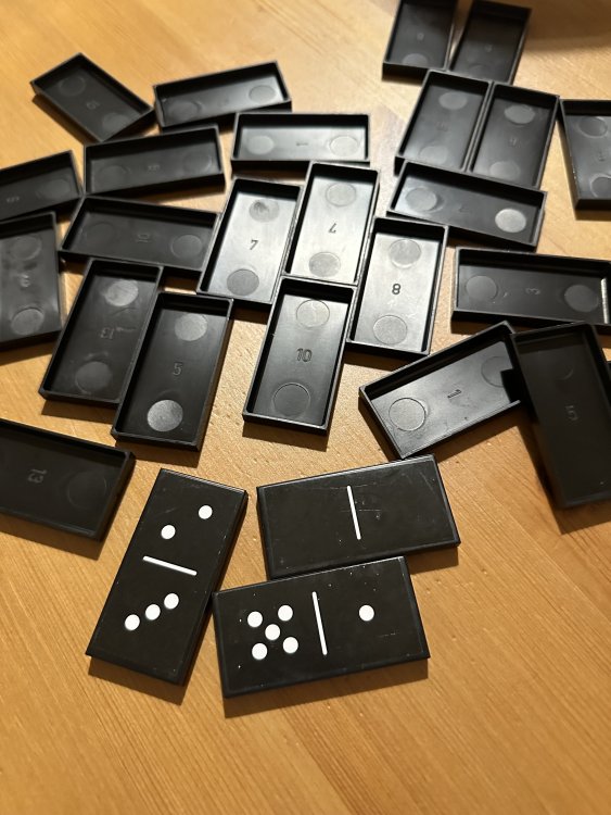17. I wanted to get a set of Dominos to play with the relatives and the local Target-style store only had these and oh my god it is some cheap shit i mean not only is it a hollow lightweight throwaway, the fucking backside has different numbers from the injection molding or whatever so you can literally just memorize what dominos other players have from looking at rhe back