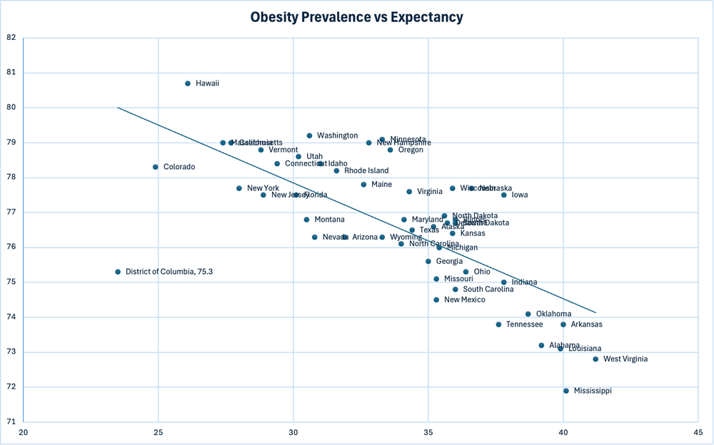 4. This is not BMI% directly, but it's % of BMI over 30 Congrats to D.C. for having the highest homicide rate in the country, at over 4x the national average. (Their cancer rate is lowest decile and heart disease is 2nd lowest decile).