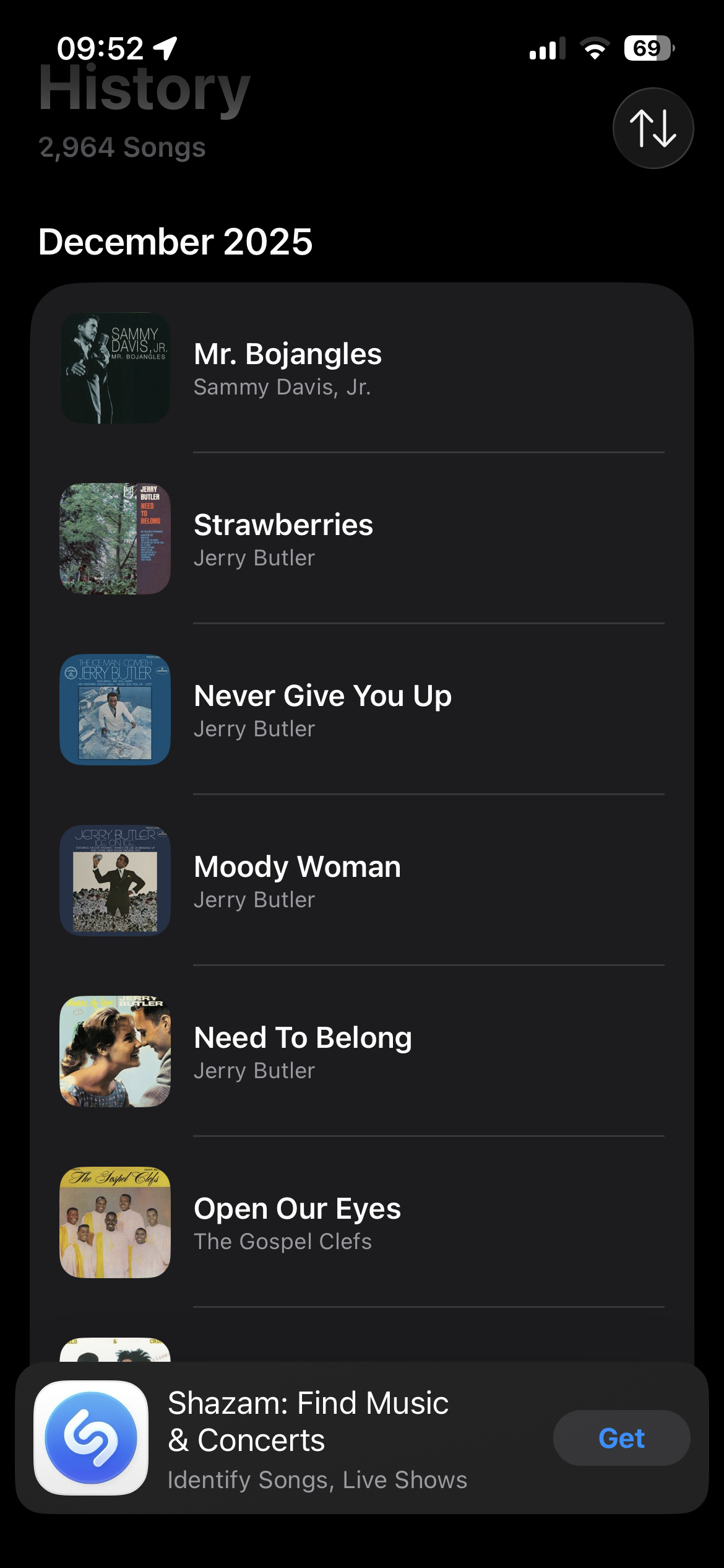 8. Radio station in my Uber was playing a Jerry Butler mix for his birthday, bookended by a gospel song and Sammy Davis’sssss Mr Bojangles.