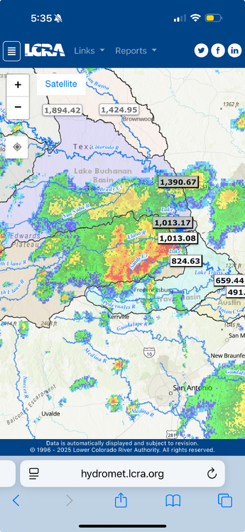 4. Buchanan watershed getting it right now. if it holds together Llano river and LBJ watershed are next, could make it's way into Travis after that. long line, horizontal across the highland lakes region. should all be runoff at this point. wow.