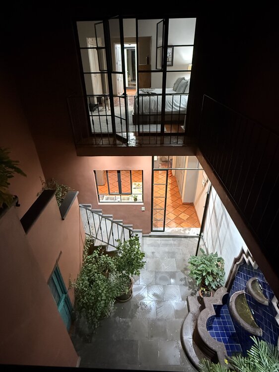 1. We made it… it’s raining but it’s lovely. we are in San Antonio too. Got my home office set up from Office Depot and we stocked up at city market. enjoyed a social food group lunch at a Peruvian restaurant and met some lovely people. Food was a 7 so that was great. We have 2-3 more of these social food gatherings on our calendar. Met a chef will take tapas class with him. tomorrow we will get the boys set up with a bike/moped, they have some Spanish informal immersion not really classes 2x a week starting tomorrow. boys and I will hit the gym tomorrow afternoon. setting up padel, pickleball and tennis early this week too. next Saturday morning doing an art walk. we have a third floor roof top I’ll snap some pics during morning coffee tomorrow…