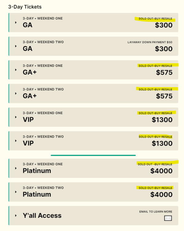 6. Only tier-3 GA tickets for W2 left, and whatever they hold back for single day tickets.