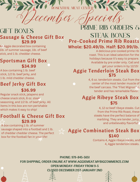 Rosenthal Meat Science and Technology Center | Teaching, Research, Extension and Service (agrilife.org) The one pound summer sausage football sounds pretty damn festive, no? Some pretty good meat though overall, and they cranked up their creamery again. But I imagine they have some pretty substantial restrictions about selling on a larger scale. Most of their research dollars would come from their competition then, like Blue Bell and the big 3 meat packers.