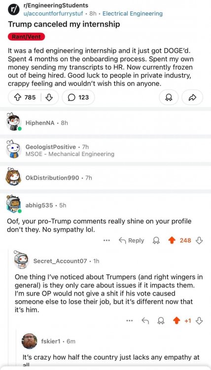 Anyways, a lot of this sort of stuff I learned in the late 90s before the Internet and Youtube were a thing has now been outsourced to people like Ben Shapiro, Crowder and other talk show/podcast guys who can reach a large audience. They go into much more political discussion, reinforce it with "smackdown" type videos, and radicalize these kids to their belief system, and those 20 people in that video are the result of it. Completely lost in an echo chamber of their own beliefs, unable to listen to a single person discussing a different view, and just simply restating their own beliefs over and over and over as if that makes their arguments valid.