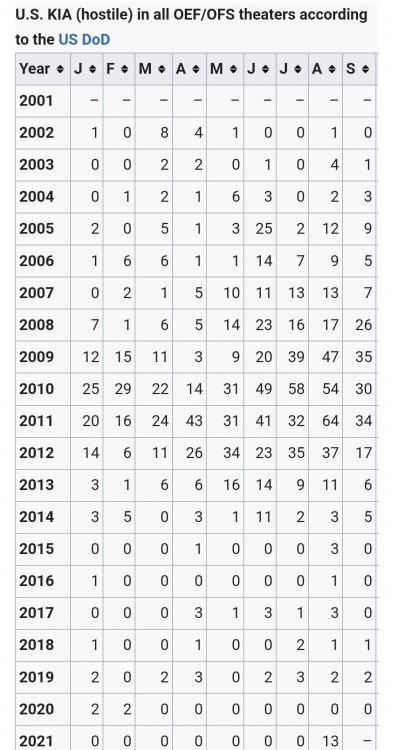 17. Maybe this has already been discussed, but Trump made a claim that Taliban snipers were killing American troops in Afghanistan until he negotiated with them. He claimed that after his negotiations not one person died for 18 months because he threatened to bomb "Abdul's" house (not the correct name). Let's suppose this story is somewhat accurate. What was stopping him from doing something about this between Jan 2017 and Feb 2020? It took him 3 years to get around to this? Was he too busy coming up with his Health Care Plan concept? And it's not like Biden got into office and the Taliban started attacking again because he was weak, they got one suicide attack off as the military was leaving the country and that was it. All Trump did was acquiesce to the Talinban's demands of prisoner releases, and they were happy to comply. It wasn't some great plan, it was him rolling over because he didn't have any personal financial interest in Afghanistan to defend.