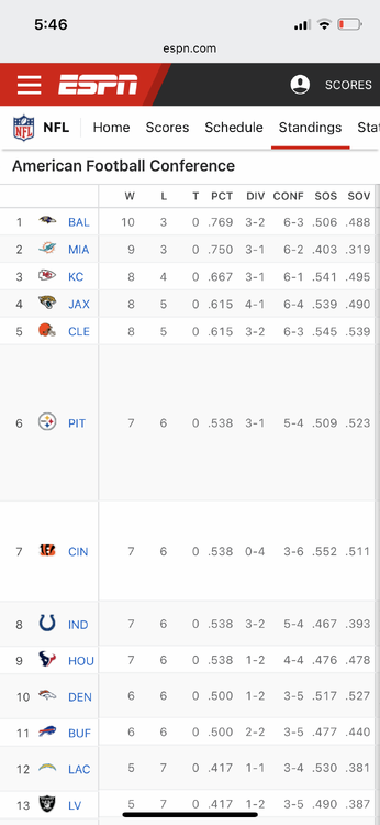 8. All 4 AFC North teams would be in if the playoffs started today (yes I know I need to charge my phone).