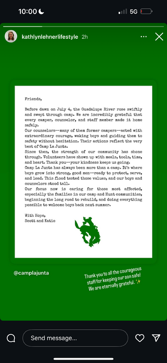They’ve been getting grief about that forever. They have basically window units. Ozark is a good option if you’re in DFW. Of course Longhorn. These camps are gonna do something for the displaced Mystic girls, I would suspect. Waldemar has more land than Mystic and has never sought to expand operations (300 versus 700 girls and I think only 2 terms versus 3). The Elmores don’t need the money. Maybe they will feel differently now, I don’t know. There could be displacement while other camps identify land to develop accommodations for more girls. My wife and I got into a little spat because I want a detailed plan before my oldest goes back to be a counselor in training and my youngest has 4 more summers. And they did everything right. I’ve never once thought about the flooding of the Guad being down there the last 9 summers. Now I’m scared to death of them going again.