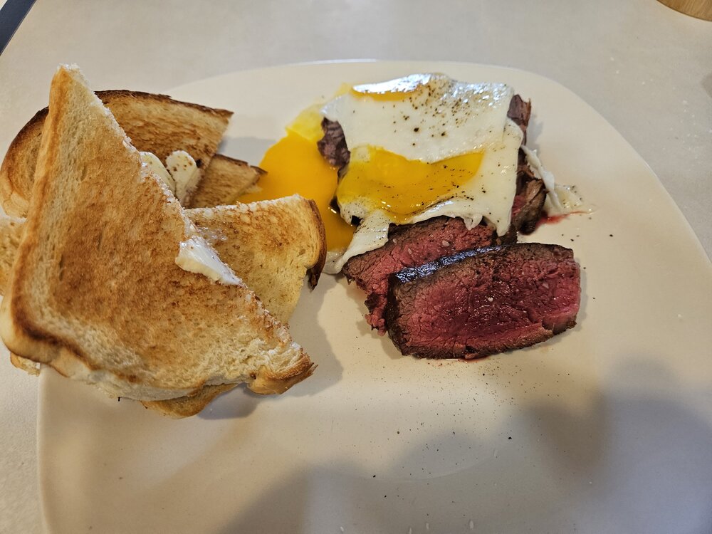 8. Sorry about the lack of paper plate. Wanted steak and eggs. Made steak and eggs.