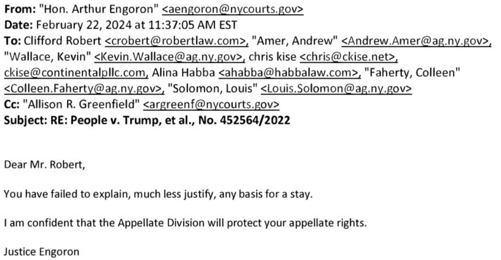 12. It seems to me that the imminent filing of a judgment in the Leticia James Civil Fraud Trial will start a 30-day clock running during which Trump will have to either put up something like $500 million (the entire judgment amount, including accrued interest) in cash, or secure a bond in excess of that amount, in order to appeal Judge Engoron's judment and stay enforcement of the judgment, or pay the judgment in full in the amount of about $500 million. It also seems to me that Trump does not have $500 million in cash and that he will not be able to obtain a bond in the amount required as bonding agents do not want real estate assets as collateral, and besides, bonding agents know Trump's nature and will not want to do business with him. So it may be that enforcement of Judge Engoron's order may force Trump into bankruptcy or otherwise Trump will face seizure and liquidation of enough of his assets to satisfy the judgment. I'm no lawyer, but this is what I gather from readings on the internet. TL;DR - Judge Engoron's judgment, if enforced, will ruin Trump financially. Anybody see things working otherwise?