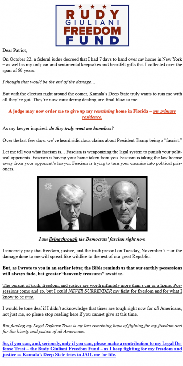 3. I got an email from Rudy: "Now, my primary residence could be seized."
