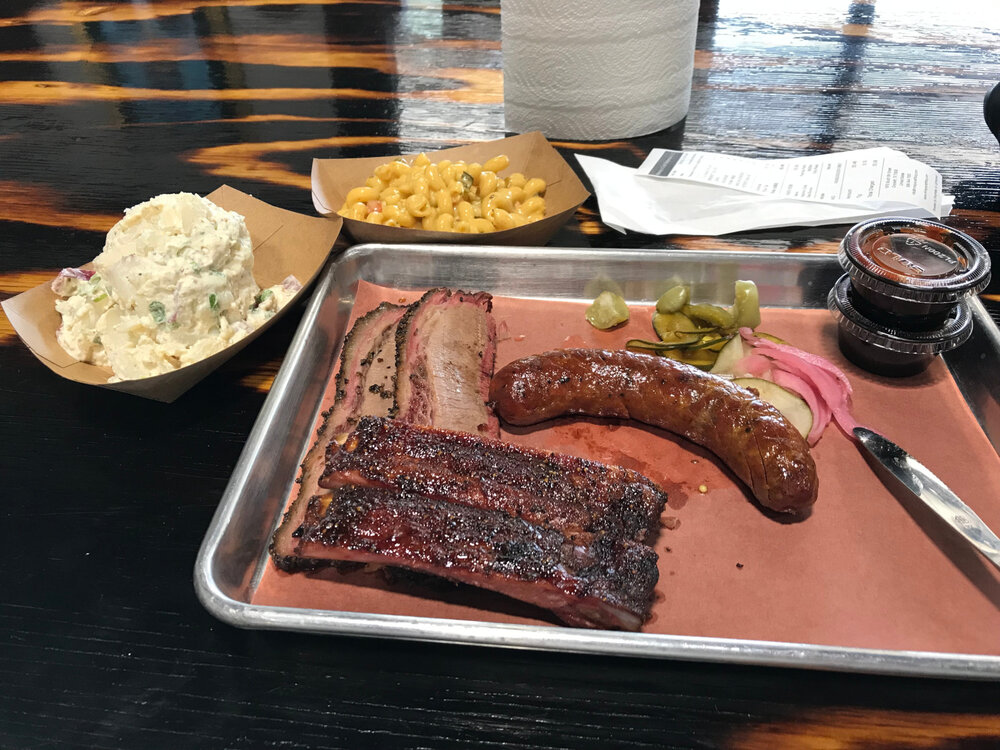 11. I had lunch at Mimsy's Craft Barbecue in Crockett, Texas today. It was damn good. I would slot the 5 alleged top places I've been as follows: (1) Mimsy's (2) Corkscrew (3) Truth (Y & Z) Pit Room and Pinkertons - both of these places are way inferior relative to Mimsy's, Corkscrew, and Truth, enough so that I'd never return to either place. http://www.mimsyscraftbbq.com/ 1979 S 5th St, Crockett, TX 75835 That is smoked queso poblano macaroni and cheese. The potato salad is of the same sort/class as what Nielsen's Deli on Richmond Ave. serves, only better.